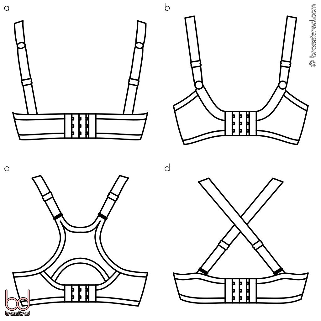 Considering a selection of bras, describe the band and straps of each in detail.