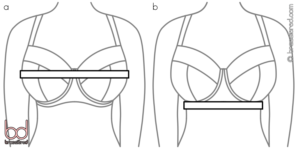 As if all that didn't make finding suitable bras challenging enough, it is very common for women to have breasts that are slightly different shapes and sizes - so common, in fact, that perfectly symmetrical breasts are a rarity. Bras with padding, whether removable, or in the form of moulded cups, can help balance or disguise a slight unevenness, whereas more stretchy cup fabric will follow the shape of breasts better, but women with pronounced asymmetry may make use of silicone inserts or even resort to custom-made bras. With regular bras, the larger of the two breasts should be used to determine the cup size, so as to allow it to be contained comfortably rather than being squashed.