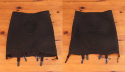Should you find a style that would be suitable save for its absence of suspender straps, it's relatively straightforward to add these afterwards. In Figure 10, my husband's stockings are held up by raunchy red elastic and clasps taken from a cheap suspender belt, the contrast in colour livening up what would otherwise be a fairly unassuming piece of shapewear. It's also possible to buy such suspender straps, with sturdier styles intended for corsets working just as well with a girdle. Either way, there's no excuse for him not wearing nylons!