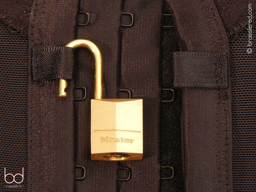 While the formidable fastenings of a high waist girdle offer ample deterrent to such activities in themselves, their design also lends itself to being locked around the body. After all, a true chastity belt cannot be taken off without first being unlocked, preventing its wearer from enjoying bodily pleasures until they've obtained the express permission of whoever holds its key. As any wearer of one of the many modern day metal devices will attest, surrendering control over one's sex to another is a supreme act of submission, something that is no less profound for being enforced by fabric rather than steel. Just like its sterner counterparts, a lockable girdle imposes psychological as well as physical control, strongly encouraging its wearer to accept its embrace.