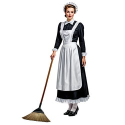 Last, but by no means least, maids are marked out by an unmistakable uniform, even if that's nothing more than the practical apron that a professional cleaner wears to protect her clothes. More formal roles have correspondingly more formal uniforms, with the maids that feature in period dramas and pornography providing very different examples of how stylised such outfits can be. Whether stiff cotton that shrouds the wearer from neck to toe, or skimpier satin that does precious little to hide her charms, the black and white of the stereotypical maid's uniform announces her position to anyone who sees it, not least its wearer. A woman might do the very same chores in regular clothing without warranting comment, but have her don a frilly apron and a little black dress and she suddenly becomes a submissive servant - one of the reasons why maids employed as such, be it in a great house or a hotel, wear uniforms, and indeed, why a French maid's outfit proves so provocative in the bedroom.